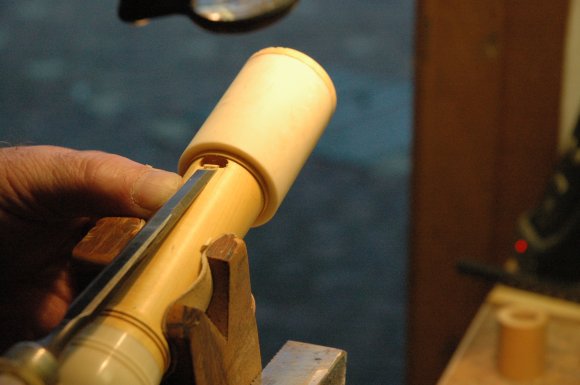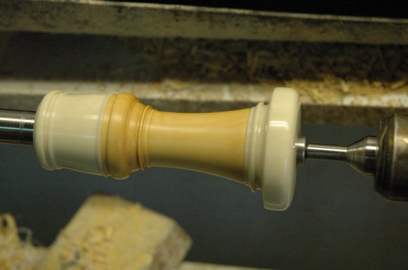 • Débité en demi-fût, le buis travaille en séchant ce qui induit moins de pertes. Après un séchage de 8 ans en milieu aéré et par toutes températures, je le débite en carrelet et de nouveau, il sèchera pendant 3 ans.